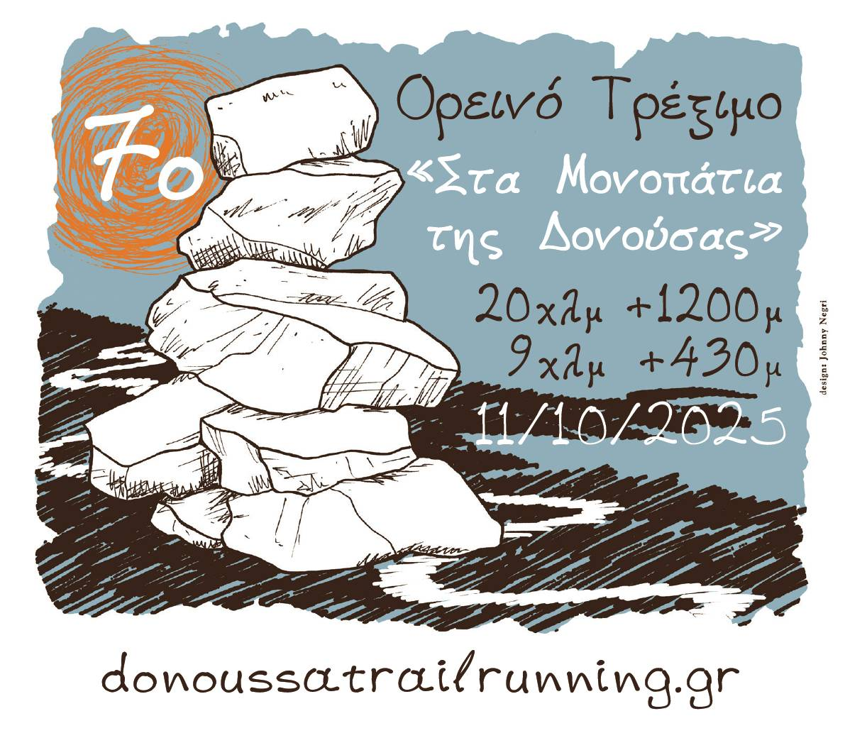 Ο Πολιτιστικός Περιβαλλοντικός Σύλλογος Δονούσας ΠΟΣΕΙΔΩΝ σε συνεργασία με την Ένωση Δονουσιωτών Κυκλάδων και το Σύλλογο Επαγγελματιών Δονούσας, σε συνδιοργάνωση με την Περιφέρεια Νοτίου Αιγαίου, το Δήμο Νάξου και Μικρών Κυκλάδων και υπό την αιγίδα της Δημοτικής Κοινότητας Δονούσας προκηρύσσει το 7ο Ορεινό Τρέξιμο ''Στα Μονοπάτια της Δονούσας'' στη Δονούσα Κυκλάδων.